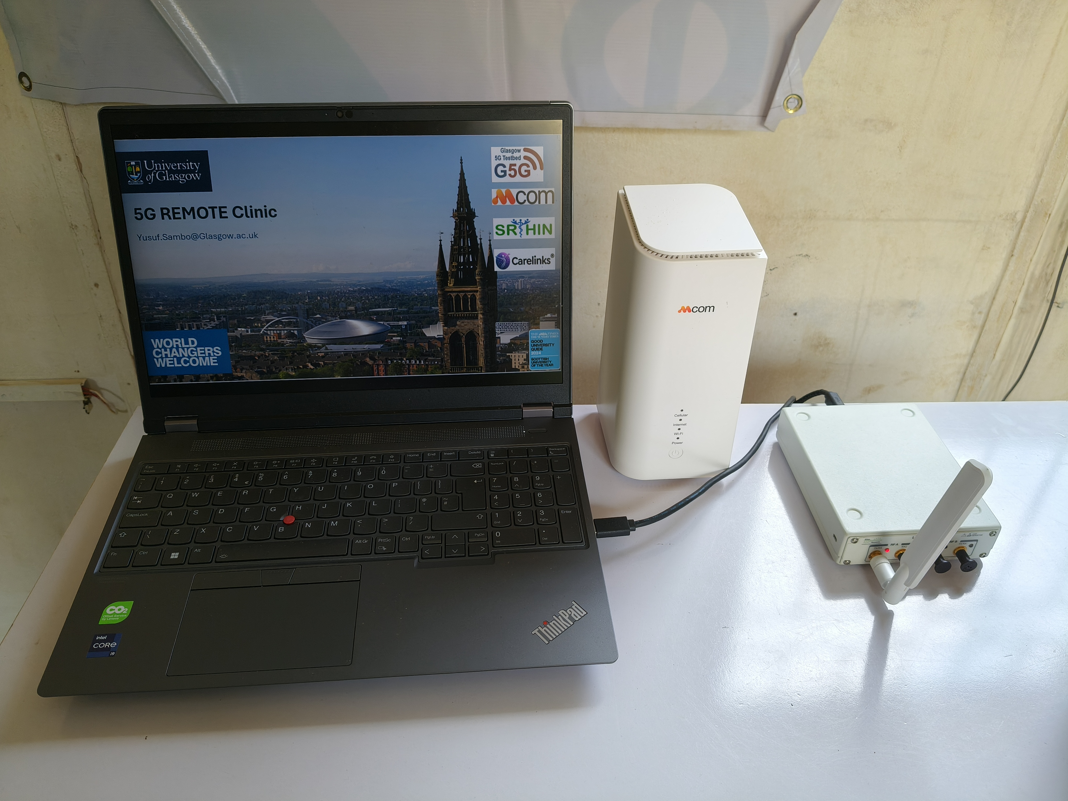 The University of Glasgow, in partnership with MCom, the Slum and Rural Health Initiative (SRHIN), and Carelinks Healthcare Solutions, successfully conducted a 5G Remote Clinic field trial at the New Kuchigoro Internally Displaced Persons Camp, Abuja, Nigeria on Friday 24 and Saturday 25 October 2025.